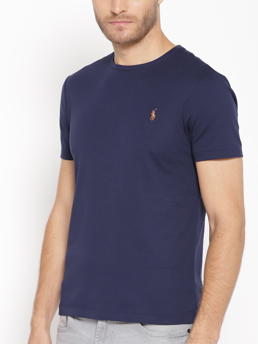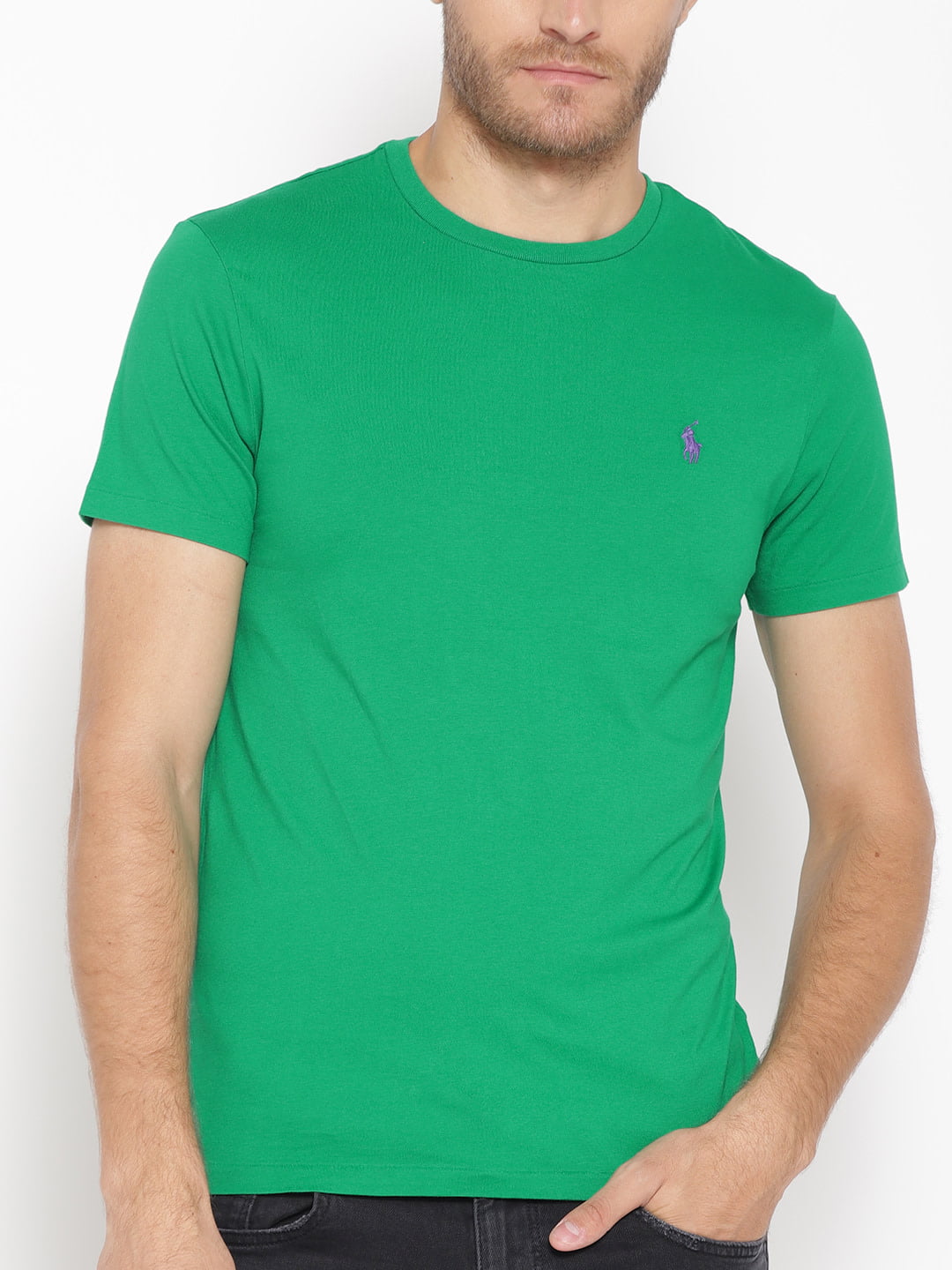 Green solid T-shirt, has a round neck, and short sleeves